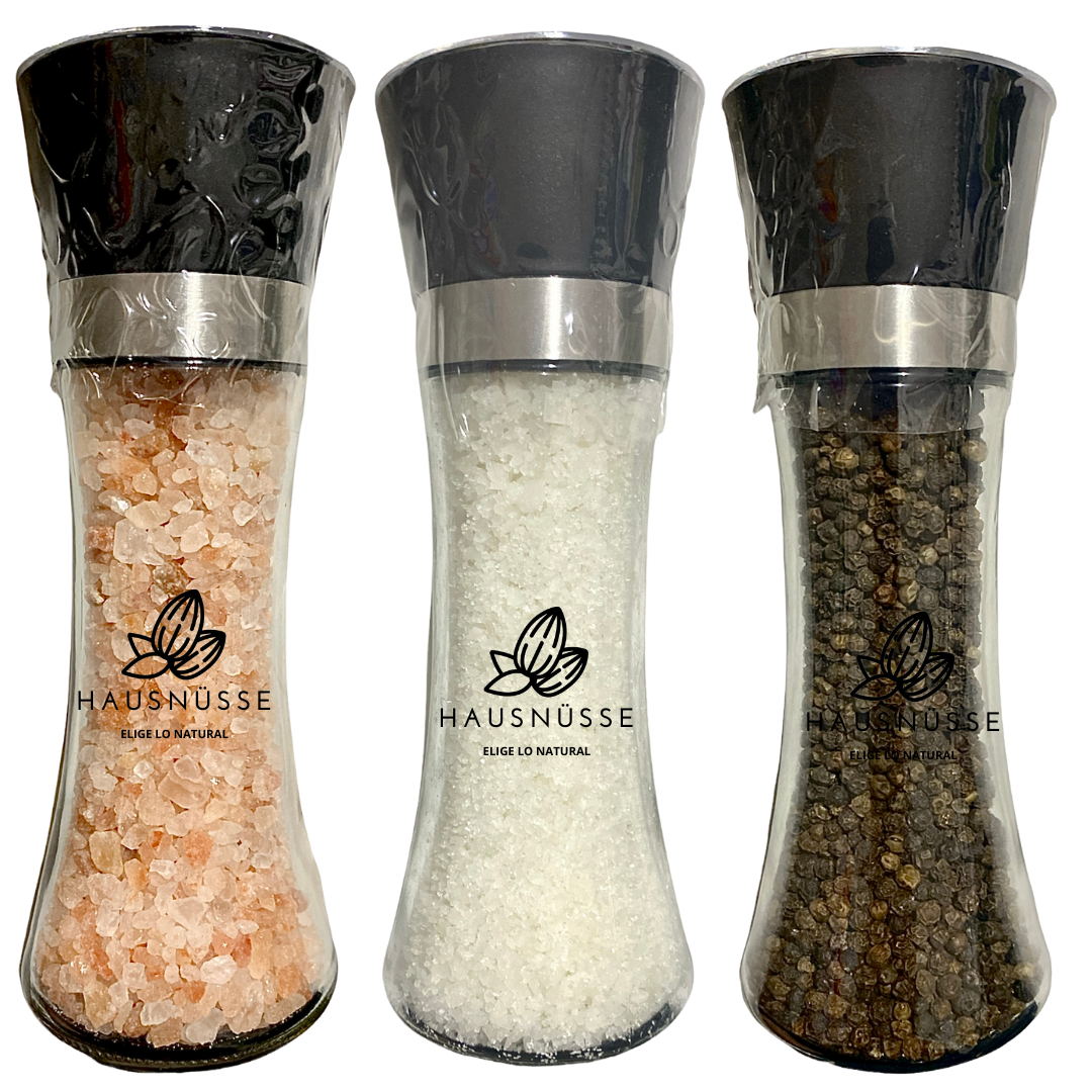 Pack 3 molinillos, inluye 1 molinillo pimienta, 1 molinillo sal himalaya, 1 molinillo sal de mar